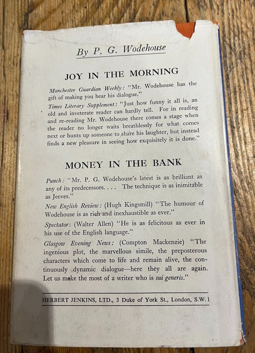 Dustwrapper-illustratie door Frank Ford. Eerste Britse editie. De zesde Blandings-roman, en een mooi exemplaar.