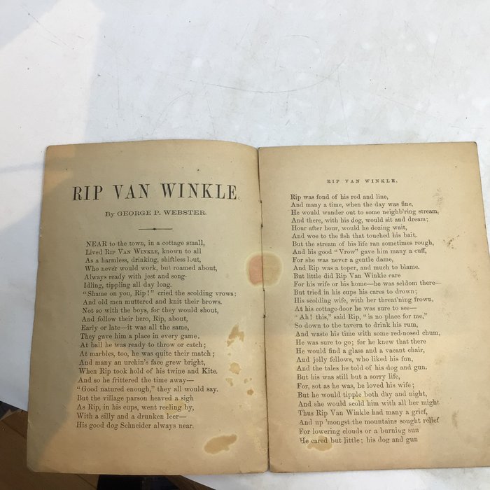 1. "Rip van Winkle - McLoughin Brothers, New York - 1889 eerste druk - 14cmx12cm - conditie: goed, in originele omslagen met wat slijtage aan randen, wat paginavlekken, alle illustraties aanwezig