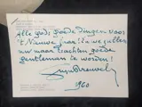 Postkaart met originele tekst en handtekening van Stijn Streuvels met bijbehorende envelop met origineel handschriftvan januari 1960.
