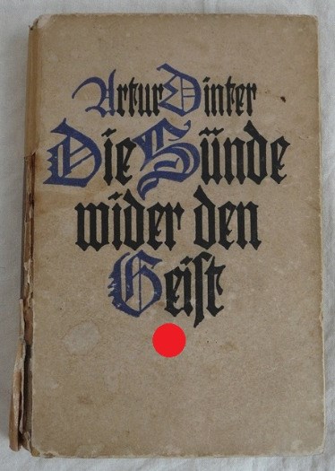 Een in gelezen staat Duits boek (hardcover) genaamd: Die Sünde wider den Geist, uit 1921. Van de auteur: Artur Dinter. Uitgeverij: Verlag Matthes und Thost, Leipzig und Hartenstein im Erzgebirge. Eerste tot tiende oplage 1.-50. Duizend. Duitstalig (Gotisch schrift). Bestaande uit 244 pagina's. Afmeting boek ongeveer: 12 x 18,5 cm.