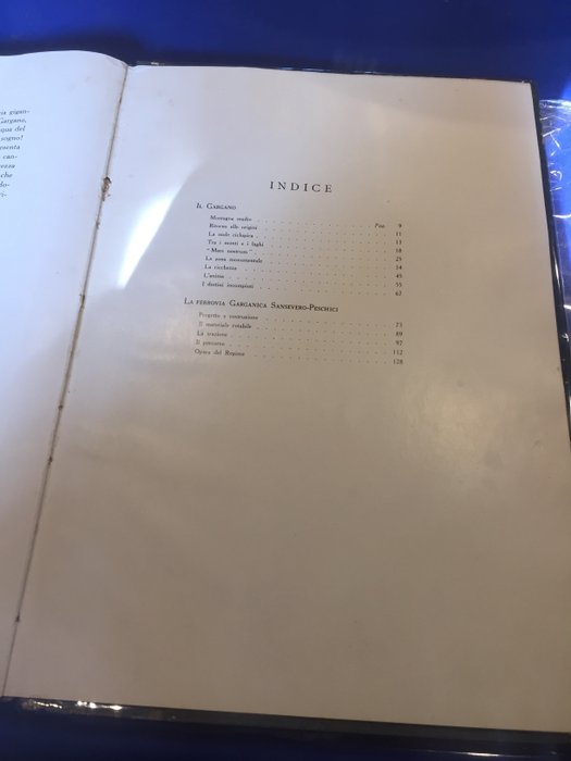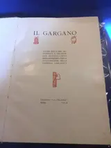 De Gargano en zijn spoorweg door de S.A. Zuidelijke Spoorwegen en Tramwegen. Rome - Sansevero gepubliceerd in 1932. Het eerste deel gaat over de Gargano als omgeving, flora, fauna en schoonheid, het tweede deel over het Sansevero Peschici-spoorweggebouw. Veel foto's in de tekst, uitgeversband met gebruikssporen, binnenwerk in goede staat op gestreken papier. Pagina's 2/b 147 tekst 1/b