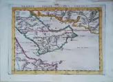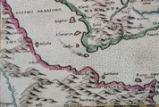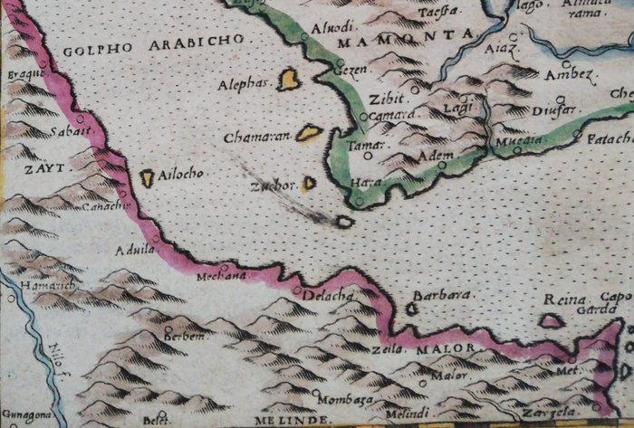 Mooi voorbeeld van de tweede staat van Ruscelli's moderne kaart van Saoedi-Arabië, de Perzische Golf en de Rode Zee, uit Ruscelli's Geografia.