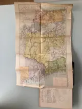 Compleet met drie kleurenkaarten en een meervoudig gevouwen vergelijkingstabel van de verschillende inheemse woorden. Goed exemplaar, slijtagesporen op de rug en aan de randen van de rug van deel 1 met lichte fouten zoals te zien op de afbeeldingen, marginale scheuren op de gevouwen papieren, interessante stempels uit de militaire bibliotheek van amiens. Lichte sporadische ouderdomsvlekjes. Stevige binding.