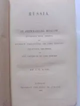 "Russia. St. Petersburg, Moscow, Kharkoff, Riga, Odessa, the German Provinces on the Baltic, the Steppes, the Crimea and the Interior of the Empire", een prachtig boek uit 1844 dat verschillende aspecten van het leven, de geschiedenis en gewoonten van de Russische en Baltische bevolking. Binnenwerk perfect, uiterlijk wat lichte gebruikssporen op de hoeken en wat vlekjes op de omslagen. Zoals op de laatste foto te zien is, verschijnen er geen kaarten of grafieken in deze uitgave. Zeldzaamheid