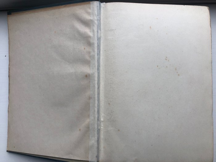 Hoeken en randen van de planken zijn gestoten. Versleten ruguiteinden. Wat foxing.