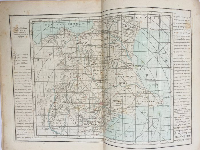 De trouwe indicator of gids van reizigers die alle koninklijke en bijzondere wegen van Frankrijk leert. Bij het bord van de Globe, Parijs. Editie gecorrigeerd en aanzienlijk uitgebreid in 1780. Titelpagina gegraveerd door Aubin. Compleet met de toewijdingspagina aan Monsieur Cassini de Thury. Compleet met 21 dubbele pagina's waaronder 19 kleurenkaarten, waarvan 8 uitvouwbaar. Aan het einde van het boek, het Algemeen overzicht van Frankrijk door M. Brion om te dienen als inleiding tot de analytische en geografische tabel van dit koninkrijk en het Prospectus van de reisgids. Paperback in-4, kleine openingen in hoeken, lichte foxing op de eerste drie bladen.