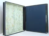 Gebonden in volledig linnen, vergezeld van een doos die op het voorplat is versierd met een ingeplakt vignet, titel met vergulde letters.