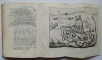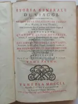 Deel I vol perkament met verguld etiket en titel, pp. 256 [ LXIV] 2 gevouwen geografische platen, 2 gevouwen figuratieve platen en 5 platen, compleet .
