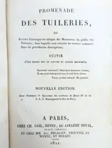 Promenade des Tuileries, of Historische en kritische mededeling van de monumenten van de Tuileries-tuin: waarin de fouten worden vermeld die in de voorgaande beschrijvingen zijn gemaakt; gevolgd door een bericht over het Louvre en andere monumenten ... Nieuwe editie, met prenten en exemplaren van de geschriften van Henri IV en van H.K.H. monseigneur de hertog van Berry ([Marie-Nicolas-Silvestre Guillon] C. Gail neef: Delalain: Treuttel en Wurtz: Dufart, Parijs en 1821. Deel in-8 VII-[1 bl.]-132 blz., platen