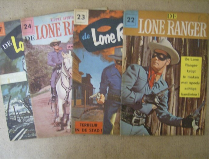 nu aangeboden de lone ranger zuid-nederlandse uitgeverij de nummers 22 , 23 , 24 , 27 het zou kunnen dat er al verkocht zijn bel of mail kijk ook eens bij al mijn advertenties