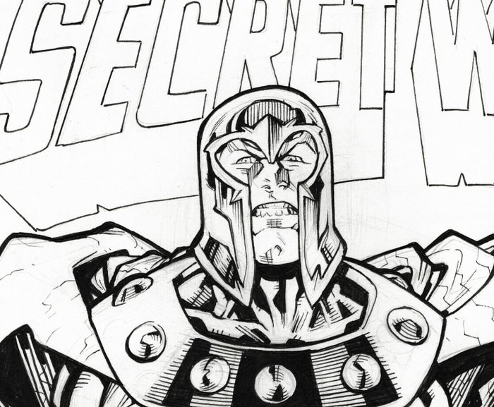 Deze uitstekende originele tekening is een herwerking van de "Marvel Super Heroes Secret Wars Vol 1 #2" Cover gemaakt in 1984 door Mike Zeck en John Beatty, en gepubliceerd op 28 februari van hetzelfde jaar.