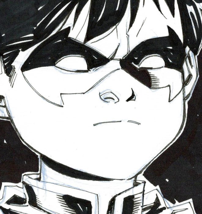 Deze geweldige originele tekening van Robin [Batman & Robin] is dit jaar gemaakt door de Spaanse kunstenaar Ramon F. Bachs.