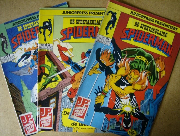 nu aangebodende spektakulaire spidermande nummers 61 , 63 , 91uitgever juniorpresshet zou kunnen dat er al verkocht is bel of mailkijk ook eens bij al mijn advertenties voor veel meer spiderman