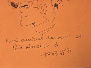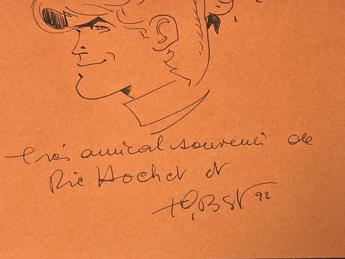 Zeldzame gesigneerde gesigneerde tekening uit Tibet die Ric Hochet + Kid Ordinn voorstelt in een Chick Bill TT: