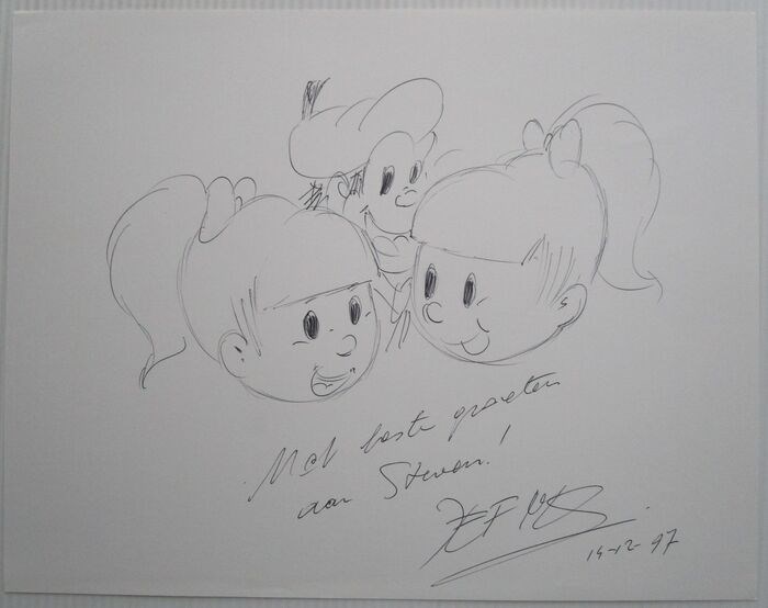 Jommeke - opdrachttekening Jef Nys - Annemieke en Rozemieke + Pekkie - (1997)