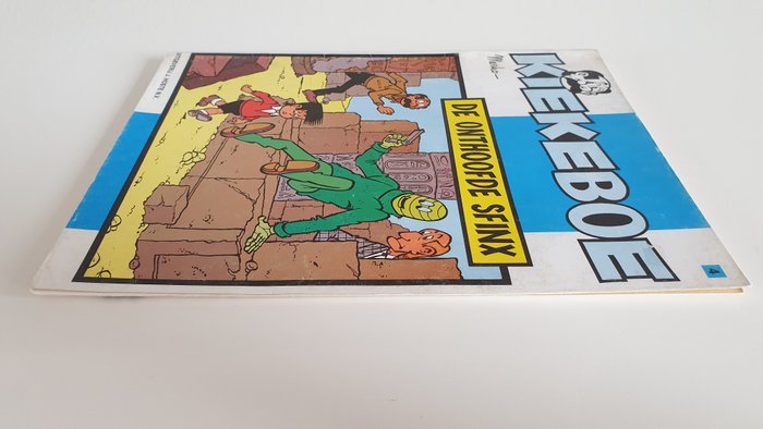 Dit is de 4b versie, oftewel met de zwarte achterkant. In de 15 jaar dat dit album in mijn bezit is heeft het altijd netjes in een striphoesje gezeten. Het album wordt nu geveild omdat ik mijn complete Kiekeboe collectie verkoop (alles eerste druk). Het album wordt goed verpakt en inclusief striphoes verzonden. De strip is bijna 45 jaar oud en verkeerd nog in zeer goede staat. Hieronder enkele bijzonderheden / mindere punten. Daarnaast kunnen de vele foto's worden bekeken die zijn toegevoegd.