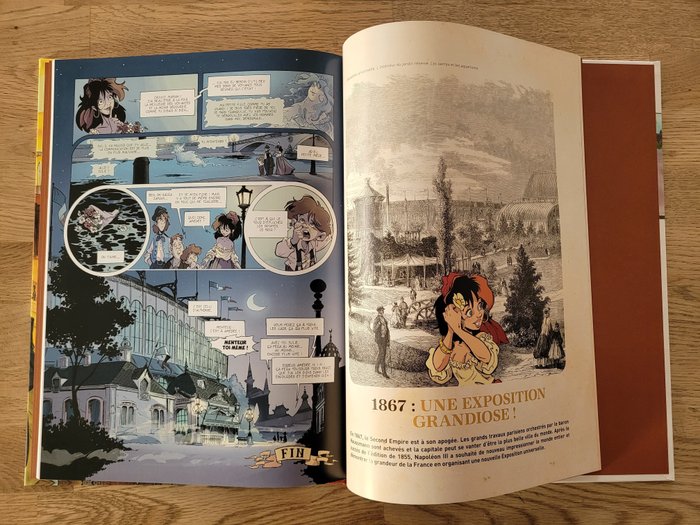 De dochter van de universele tentoonstelling, door Manini en Willem, deel 2 Parijs 1867 zeldzame editie Canal BD, merkte op "Eerste editie". Dit boek, gelimiteerd tot 1.200 exemplaren, heeft een rode canvas rug en een originele omslag met matte laminering en een genummerd ex-libris. Met een notitieboek van 8 pagina's waarin de tentoonstelling wordt gepresenteerd en een grafisch notitieboek van 8 pagina's. Werk in perfecte staat.