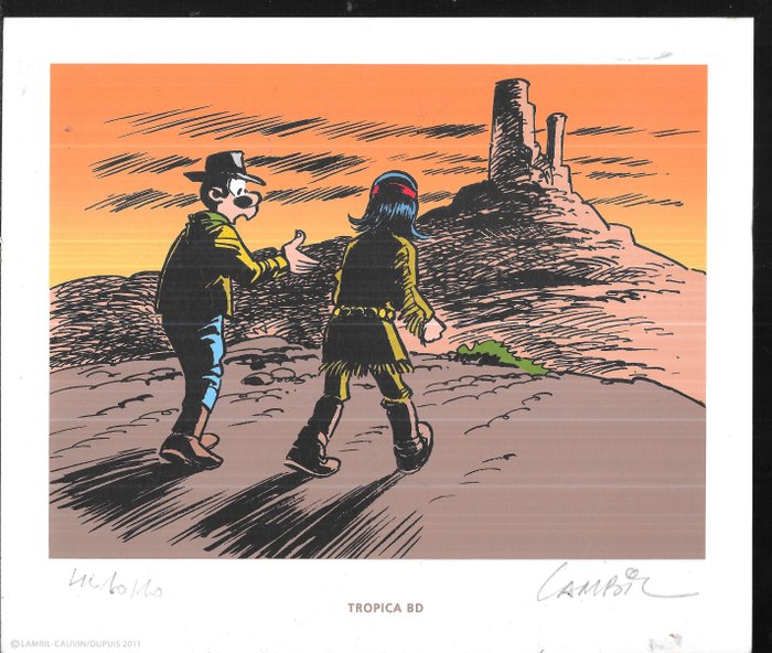 "Les Tuniques Bleues" van Lambil en Cauvin, volume 50: La Traque, EO Dupuis 2006, vergezeld van een niet-nominatieve opdracht van een volledige pagina die Blutch en Arabesque vertegenwoordigt en een ex-libris HC-editie van 10 genummerde en gesigneerde exemplaren.
