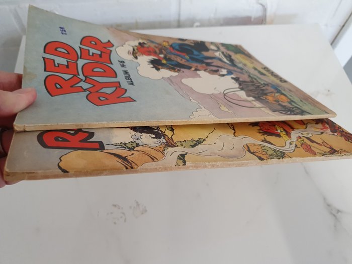 1°) Red Ryder n° 6 in eerste originele editie van 1954 in erg goede staat mét originele opdrachttekening op de linker binnencover in potloosdvan Petit Castor " que ce soit Petit Castor Red Ryder où Dan Cooper . Michel n'n manque aucun dans son inlassable traque à la dédicase dessinée " en rechterkant nogmaals getekend " A toi Michel ! Rien n'échappe à ta vigilance . Amicalement et depuis des années Albert mi 96 "én met ex-libris op de binnen achtercover.
