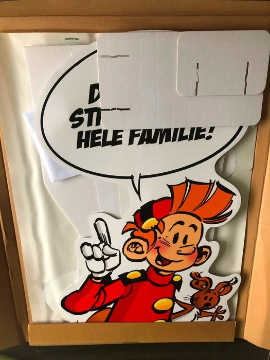 Pancarte/Display op groot formaat (172x63) uitgegeven als promomateriaal door uitgeverij Dupuis voor het nieuwe album van robbedoes en Kwabbernoot van de hand van Charel Chambré en Legendre.