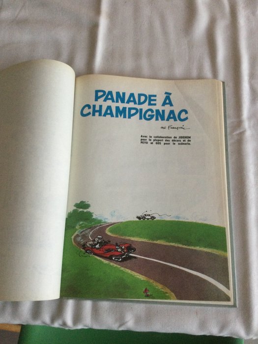 Zeer zeer fraai exemplaar van Panade à Champignac (editie met titel in blauw). Schitterende ruggen, scherpe hoeken, heel erg mooie omslagen, perfect wit notitieboekje zonder foxing. Album altijd onder doorzichtige bescherming bewaard.