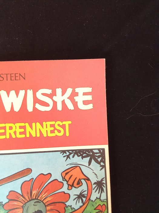 Bij het kappen van de strip op de drukkerij is er vanonder op de rug een stukje papier los gekomen van 2mm ...komt dus zo uit de drukkerij!! Links onder achterop, een vouw in de hoek.