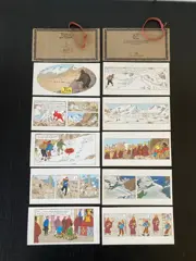- 10 panoramische ansichtkaarten 20x10 mm omgeven door twee stevige dozen met twee elastische sluitingen. Getekend door het verstrijken van de tijd, enkele kleine vlekjes. Merktekens op de dozen, waarvan één met gewiste letters (5e foto).