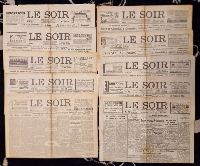 Te koop dit lot van 10 "LE SOIR" kranten uit 1943.
