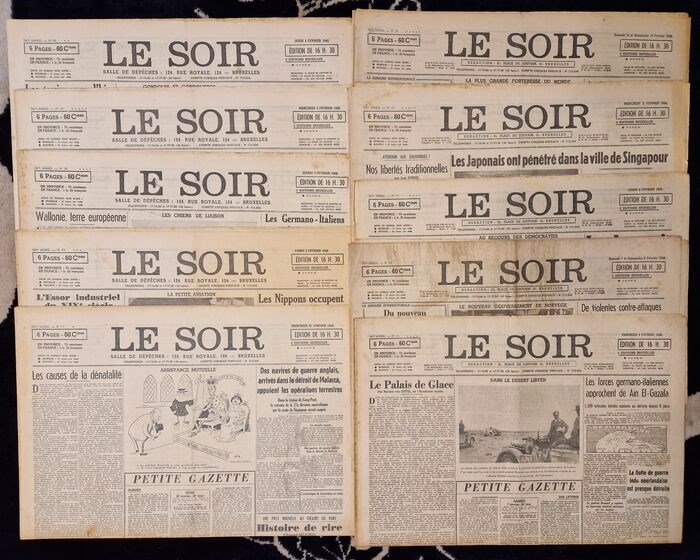 10 "LE SOIR" kranten uit 1942.