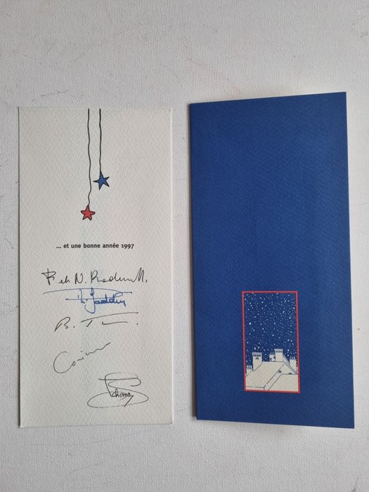 Verzameling van drie carte de voeux, verzonden door de studios Herge aan vrienden en relaties. Betreft kaarten uit 1991, 1996 en 1997. Kaart uit 1997 is gesigneerd door medewerkers van de studio. Kaarten in nieuwstaat. Foto’s maken deel uit van de omschrijving. Wordengoed verpakt, aangetekend en verzekerd verzonden.