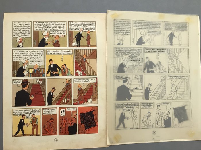 Exemplaar bestaande uit de film waarin alle Nederlandse teksten van deze plaat 3 van "Ottokar's Scepter" op film zijn gedrukt en de correcties in Oost-Indische inkt op calqueerpapier op 3 dozen voor de uitgave van dit avontuur.