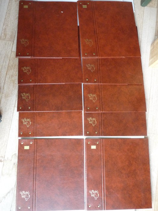 In imitatieleer met beeltenis van Kuifje en Bobbie versterkt met goud op de 1e omslag en op de achterkant.
