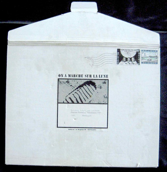 Een (historisch) dossier van 20 pagina's over het maanavontuur van Kuifje tot Armstrong. Klepdeksel met maanvoetafdrukken in reliëf. Het dossier bevat zowel een opdracht van Hergé (gedrukt) als een handtekening van Armstrong (gedrukt) plus de voorpagina's van de kranten van die tijd.