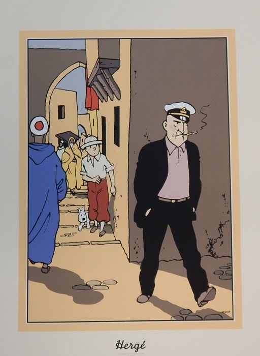Zeer mooie zeefdruk van Kuifje, uit het archief van Ziller "Archives Internationales " Formaat: 50 x 70 cm.