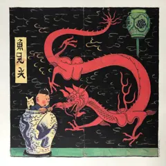 Zeefdruk van het Blue Lotus-omslagproject gedrukt door Casterman ter gelegenheid van het bezoek van Tchang-Tchong-Jen aan de Casterman Establishments in maart 1981