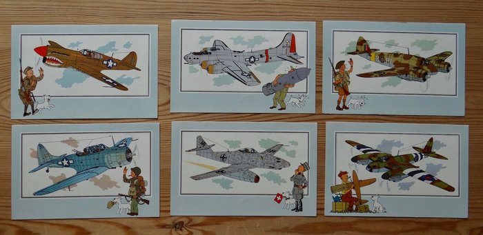 Mooie set van 54 Kuifje chromo's, in de collectie Voir et Savoir, Serie Luchtvaart 1939-1945. Alleen serie 7 ontbreekt.