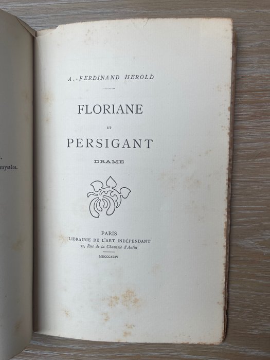 Hier verkopen is een mooi voorbeeld van A Ferdinand Herold's, 'Floriane et Persigant'. Geheel geïllustreerd door Emilien Dufour. Beperkte oplage, dit is ongenummerd. Dit is een gesigneerd presentatievoorbeeld, gesigneerd door de auteur op het schutblad. Gebonden in de originele omslagen.