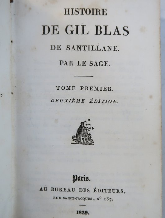 Betreft: Lesage Geschiedenis van Gil Blas de Santillane. 1829 Romantische halfkaften band