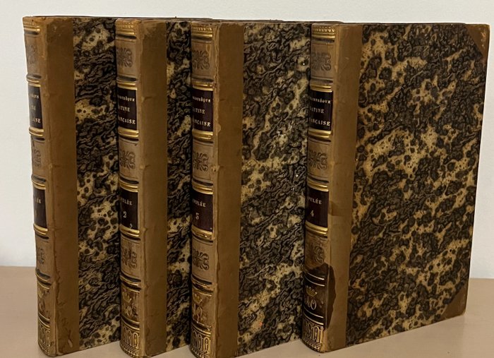 1835-1838, 4 delen, ca. 14x21 cm, 328 + 432 + 442 + 392 S, tweetalige uitgave Band halve rouw uit het bruine tijdperk, gouden motieven, kleurbescherming, ploegschijven, gouden sneden. Band matige staat, hoeken en bovenzijde hoofddeksel dof, sproeten en schuurplekken, voor de rest goede staat Beschrijving (zie foto's)