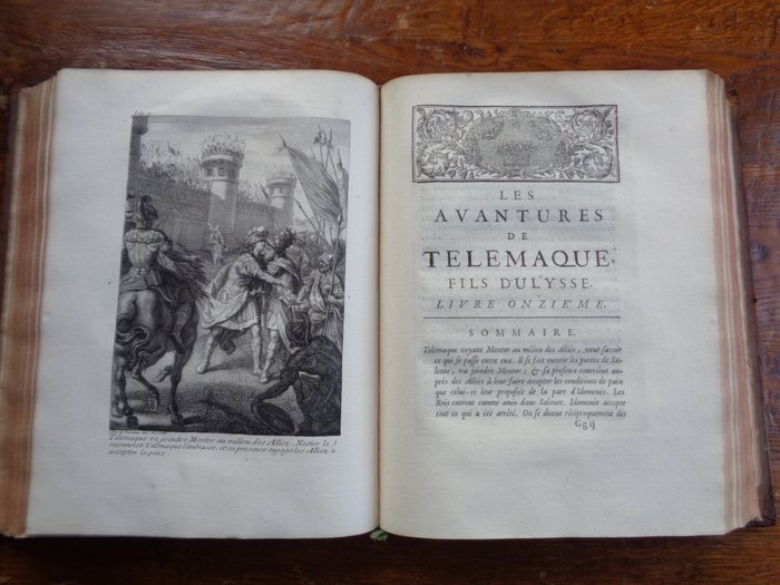 François de Salignac de La Mothe Fenelon - Les aventures de Telemaque, fils d'Ulysse - Paris, Chez la veuve Delaulne, 1730 - Nouvelle édition - 2 delen in 1 band -xxxiv + 289 / (4) + 288 pp.(2) + uitvouwbare kaart - originele leren band; rug voorzien van forse ribben, goudopdruk en titelschildje - 28 x 23 cm (GROOT-KWARTO formaat)