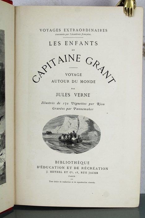 Zeer goede staat van interieur, boek geïllustreerd met 172 vignetten van Riou gegraveerd door Pannemaker inclusief frontispice, schutbladen in goede staat, Hetzel Educatie en Recreatie catalogus in prima -