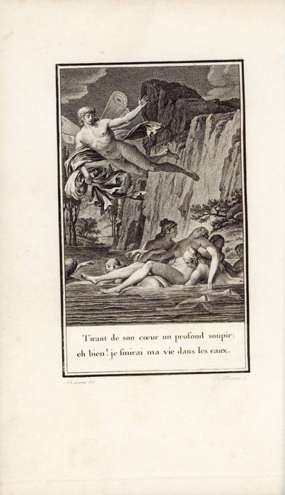 Luxueuze uitgave, geïllustreerd met reducties van de grote figuren van de editie van 1795, namelijk een portret van La Fontaine naar Rigault gegraveerd in frontispice door Audouin en 8 figuren van Moreau le Jeune gegraveerd door Dambrun, Duhamel, J. B. Dupréel, de Ghendt, L. M. Halbou, L. Petit en J. B. Simonet. (Cohen, 584-5).