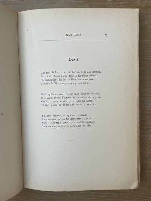 Hier verkopen is een mooi voorbeeld van 'Parnasse De La Jeune Belgique'. Gelimiteerd tot 500 exemplaren, dit is nummer 75. Gebonden in de originele omslagen.