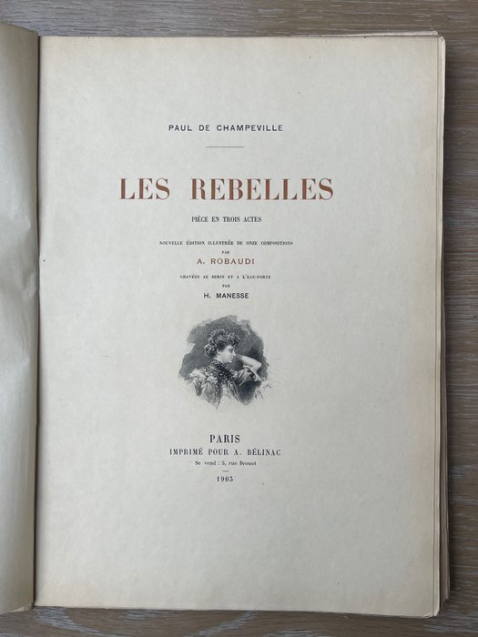 Hier verkopen is een mooi voorbeeld van 'Les Rebelles' van Paul Champeville. Geheel geïllustreerd door Robaudi. Gelimiteerd tot 100 exemplaren op japon, dit exemplaar ongenummerd. Gebonden in de originele omslagen.
