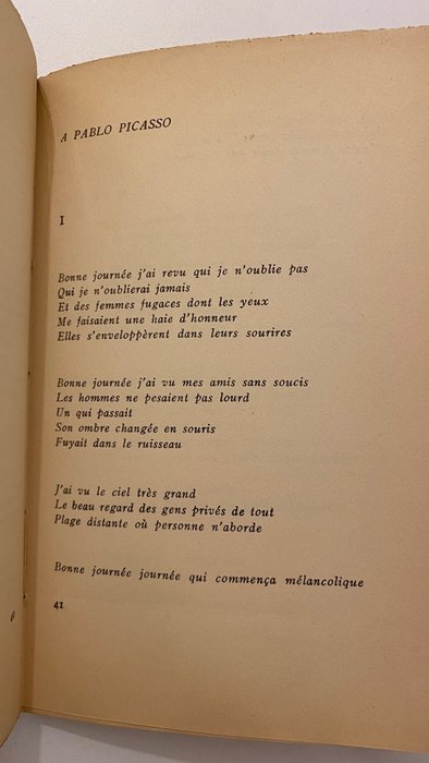 Datzelfde jaar keerde Eluard terug naar Spanje om daar een reeks lezingen te geven. Het voorwendsel is een overzichtstentoonstelling van Picasso, georganiseerd door de nieuwe volksregering die de grote schilder, de militant van de vrijheid, wil eren. Was het niet tijdens deze reis dat Eluard het prachtige gedicht schreef, opgedragen aan zijn vriend in Fertile Eyes? We willen op zijn minst op de achtergrond van deze tekst een ontmoeting oproepen tussen de twee mannen onder de Spaanse hemel, helder en puur, waarvan de ochtendfrisheid snel verdween. »