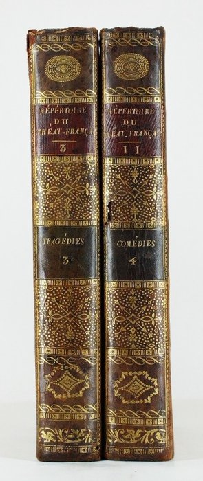 INDRUKWEKKENDE bloemlezing van de meest gedenkwaardige WERKEN IN DE GESCHIEDENIS VAN DE FRANSE DRAMA, geïllustreerd en uniform gebonden, door Claude-Bernard Petitot, Franse polygraaf, geboren in Dijon in 1772, stierf daar in 1825. Na middelmatige toneelstukken te hebben geschreven, werd hij bureauchef bij de Onderwijs van de Seine (1800) en trok zich terug in Dijon in 1804. Teruggeroepen in dienst in 1809, werd hij inspecteur-generaal van studies, vervolgens, onder de Restauratie, secretaris-generaal van de onderwijscommissie, raadslid van de universiteit, directeur onderwijs.