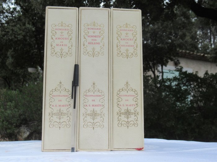 RONSARD (Pierre de): De liefdes van Pierre de Ronsard. Parijs, Les Heures Claires, 1957. 3/3 (compleet in 3 grote en mooie banden onder de dubbele hoes van de uitgever, in bladen).