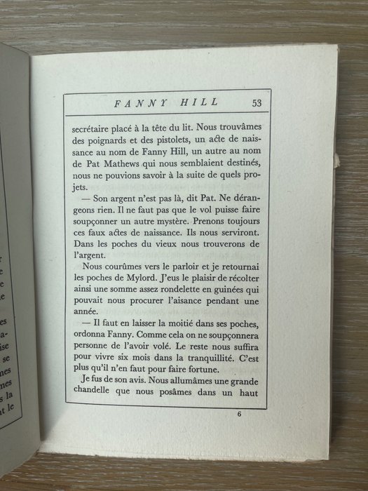 De verkoop hier is een heel mooi voorbeeld van Pierre Mac Orlan's 'Les Vrais Mémoires De Fanny Hill' gepubliceerd in Parijs, 1929.