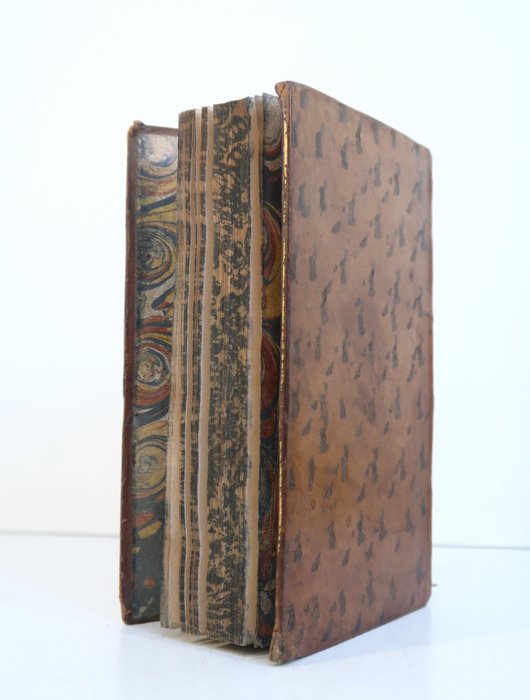 Aantrekkelijk exemplaar in een fraaie eigentijdse band van volledig geglazuurd en gemarmerd kalfsleer, gladde rug versierd met een marokijns titellabel en een versiering van gebloemde dozen in goud gestempeld.
