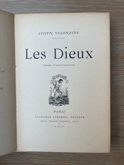 Hier verkopen is een mooi voorbeeld van 'Les Dieux' van Lucien Villeneuve. Ingeschreven door de auteur op de halve titel.
